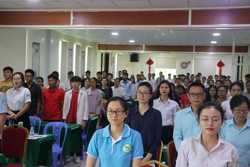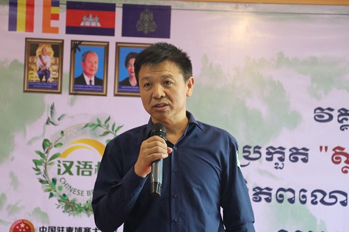 柴克清院长代表柬埔寨皇家科学院孔子学院对到场师生表示热烈欢迎,并对中国驻柬埔寨大使馆、“汉语桥”预赛协办方柬埔寨福建总商会和太子地产慈善基金、参赛高校的大力支持表示感谢。柴院长表示,第十八届“汉语桥”比赛以“天下一家”为主题,该主题充分体现了由中国举办的“一带一路”国际合作高峰论坛所提的“人类命运共同体”这一主流意识。中柬两国已成为全面战略合作伙伴关系,柬埔寨皇家科学院孔子学院从语言文化交流的角度为中柬两国之间搭建起了命运共同体的沟通桥梁,促进两国民心相通。语言相通是民心相通的基础,本次“汉语桥”比赛为柬埔寨中文学习者和爱好者提供了一个展示自我和交流学习的平台。柴院长还为选手们接下来的比赛鼓劲加油,“同学们能勇敢地站在这个舞台上就已经成功了一半,希望各位选手积极表现,勇创佳绩!”