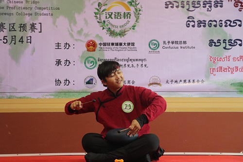 “汉语为桥,天下一家”。2019年5月4日下午,第十八届“汉语桥”世界大学生中文比赛柬埔寨赛区预赛于柬埔寨皇家科学院孔子学院三楼多功能厅举行。此次大赛由中国驻柬埔寨大使馆和孔子学院总部/国家汉办主办,柬埔寨皇家科学院孔子学院承办,柬埔寨福建总商会、太子地产慈善基金会共同协办。