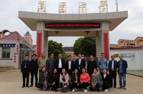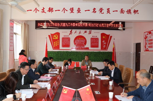 潘浔对此次活动给予了高度肯定。他对万里中学提出的“文化立校”印象深刻,提出学校教育就应该要对学生做到“内化于心,外化于行”,学校办学要做到“内强素质,外塑影响”,希望此次活动“以点带面”,助推九江基层学校的更好发展。民盟都昌县总支三支部主委、万里中学校长陈修明向支教团成员介绍了学校的基本情况、项目的建设以及办学条件,重点讲述了学校未来的规划,学校将全力打造万里校园文化,力求通过实施以榜样、制度与评价为核心的精细化管理,将万里中学办成让家长满意、社会放心、学生出彩、教师自豪的学校。