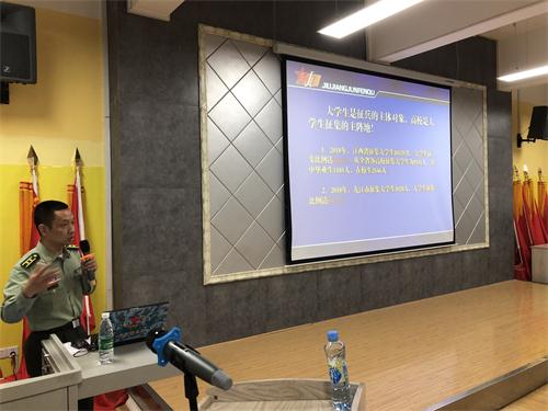 会上,钟韬从2019年国家征兵政策,省、市对高校征兵工作的政策层面进行了深入地解读,重点针对大学生入伍的优惠政策、参军后职业发展规划以及退伍后的各项保障措施等进行了辅导。学校学生资助管理中心罗中炜老师就大学生入伍学费补偿代偿等相关工作做了详细说明。