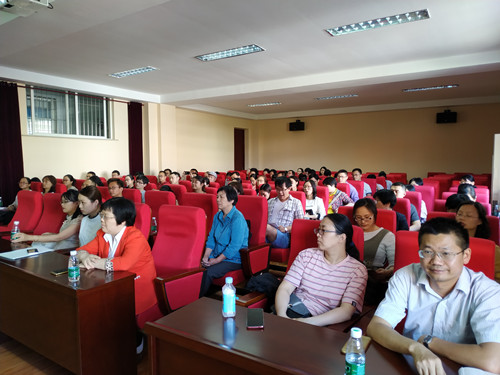 随后,陈志华老师主讲了“研学相长 教海扬帆——参加青年教师教学竞赛的体悟”主题报告,结合其参加校赛、省赛乃至国赛的体会,从赛前准备、教学内容、教学组织、教学设计等方面进行了详细讲解,并从多个角度和不同侧面分享了比赛经验、方法和技巧。陈老师建议参赛教师赛前一定要仔细研读《竞赛评分表》,认真分析各项目的评测要求,不要忽视任何一个得分点;在进行教学设计时要清晰而有巧思,教学内容既要涵括面广又要结构清楚、问题意识要强、要有设计感、图文配比应合理、材料制作应精良;在课堂教学中要深入浅出、彰显特色,做到雅俗相融、详略有致、张弛有度。