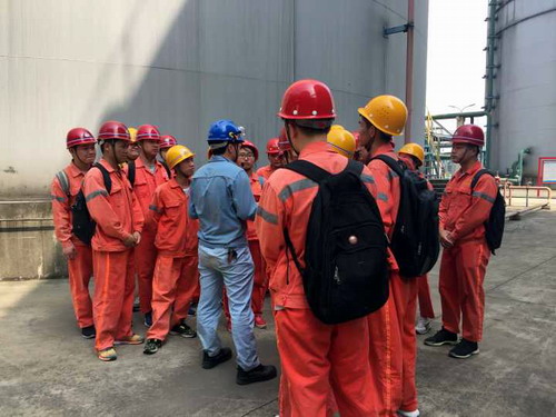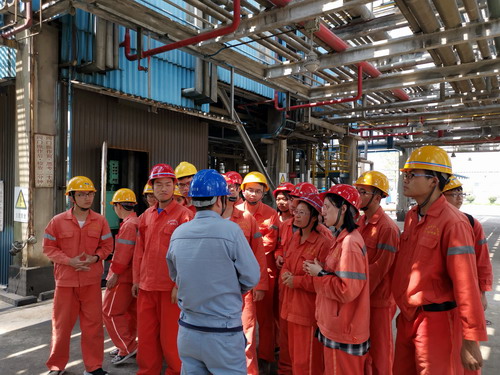 化学工程与工艺专业的学生仔细听取了关于聚丙烯和苯乙烯生产工艺的相关基础知识,随后在九江石化化工运行部现场参观学习。