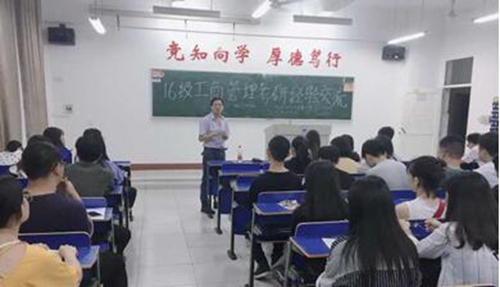 为加强16级工商管理专业学生对研究生入学考试的认知,尽早解决心中的疑虑,近日,工商管理教研室及第五支部在义丰楼501教室举办了考研经验交流会。邀请了15级工商管理专业的汪钰琳(成功考取江西财经大学法硕)、15级物流管理的林知慧(成功考取浙江工业大学物流工程硕士)、15级审计学的田冲(会计学院,成功考取四川师范大学审计学专硕)畅谈考研经验。16级工商管理专业21-22两个班班主任郑汉慧老师和封新林老师参加了交流会。