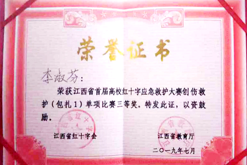 近日,由江西省教育厅、江西省红十字会共同主办的江西省首届高校红十字应急救护大赛在江西财经大学顺利举行。临床医学院欧阳海萍等五名学生作为九江学院代表队参加比赛,经过激烈角逐,获得团体红十字会应急救护大赛优秀奖,学生李淑芬获创伤救护个人三等奖的好成绩。