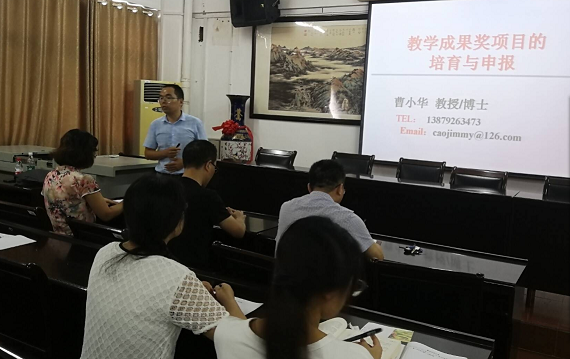 报告会上,曹小华教授分别从什么是教学成果奖,教学成果奖申报条件,申报技巧及培育方式等四个方面阐述了对教学成果奖培育的理解和申报经验。曹教授曾先后主持获得省级教学成果一等奖和二等奖各1项,具有丰富的申报经验。曹教授报告条理清楚,深入浅出,比喻形象,语言平实幽默。整场报告非常精彩,很有触动性。