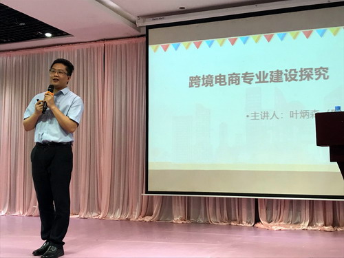 中国国际跨境电商产业联盟专家委员、大洋教育课程研发部实战教学总监叶炳森以《跨境电商专业建设》为题,展开了跨境电商课程与教材建设分享,分享当下全国各高校对于跨境电商专业发展的重视度与热度、“一带一路”背景下的跨境电商专业课程体系的建设、教学改革与创新及人才的培养方向。