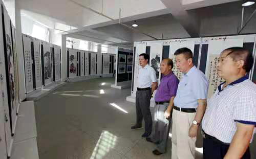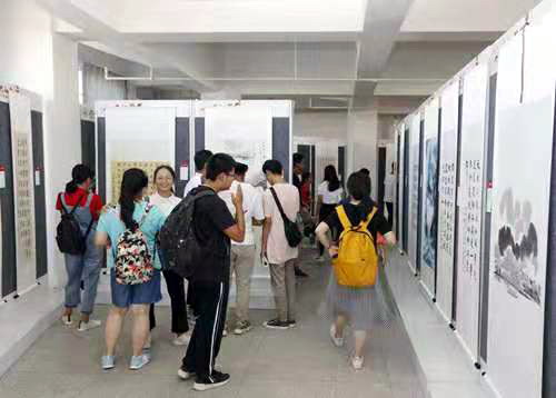 24日上午,学校庆祝新中国成立70周年“我和我的祖国”师生书画摄影展在逸夫图书馆开展。