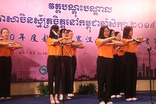 12日下午5时,闭幕式上,领导专家为柬埔寨24位在国家汉办组织的“爱国心,青春颂”诗歌征稿大赛中荣获奖项的志愿者教师颁奖。志愿者代表发言,从志愿者的角度对此次培训的内容进行总结,表达了对此次培训的感谢。柬埔寨皇家科学院孔子学院中方院长柴克清先生致闭幕式总结辞,他表示,“中柬两国自古以来就是传统友谊国,一直以来中柬领导人高度重视加强两国文化交流和增进两国人民之间的相互了解。希望老师们能够在今后的教学过程中,将所学的教学理论和方法更好地运用到汉语课堂的实践中,为中柬两国语言学习、文化交流、乃至民心相通贡献自己的青春和力量。”