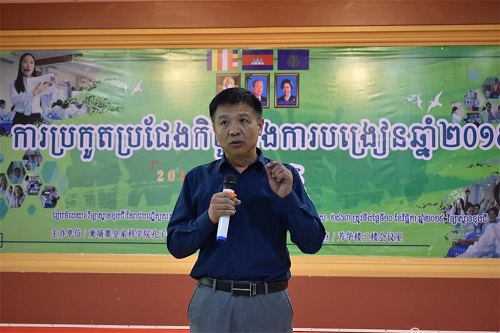 2019年11月10日下午,为进一步提升孔院课堂教学质量,提高汉语教师志愿者的教学水平,促进教师们相互交流和学习,柬埔寨皇家科学院孔子学院在孔子学院本部三楼会议室隆重举办了一年一度的孔子学院汉语教师志愿者教学竞赛。柬埔寨皇家科学院孔子学院中方院长柴克清先生和柬方院长苏碧娜(VUTH Sopheakna)女士莅临本次教学竞赛现场,来自孔子学院本部及下属各教学点的60名汉语老师参加了此次活动。
