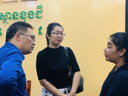 会议时正值孔院晚课期间,冯仲平副院长一行被门外传来的阵阵读书声和课堂的欢笑声所吸引,感受到了柬埔寨皇家科学院孔子学院学生学习汉语的热情。