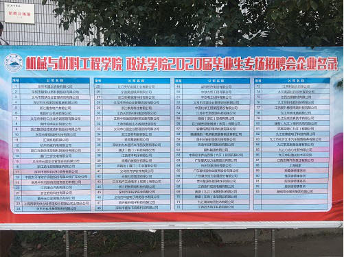 为切实做好2020届毕业生就业工作,拓宽学生就业渠道,搭建校企合作交流平台,11月3日上午,机材学院与政法学院在主校区南区训练馆联合举办了2020届毕业生专场招聘会。副校长纪岗昌、夏启国到场指导,看望了用人单位代表和参加招聘会的毕业生。招生与就业处、毕业生交流办公室负责人及机材学院、政法学院班子成员陪同。