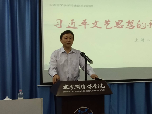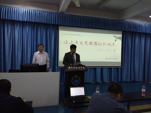 报告会上,冯宪光教授以习近平总书记2014年10月15日在文艺工作座谈会上的重要讲话为切入点,分享了他对习近平文艺思想的个人观点与看法,并就以人民为中心的文艺创作、艺术品的三要素以及马克思主义文艺批评原则与方法三个观点进行了阐释。