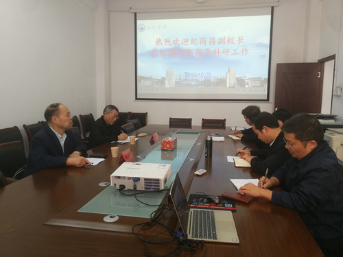 10月28日下午,副校长纪岗昌在科研处处长汪鑫的陪同下,到理学院看望今年国家自然科学基金项目获得者,理学院领导和朱章生老师参加了座谈。