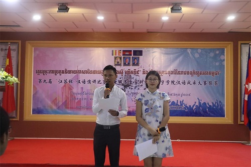 柴克清院长在开幕式上致辞时提到,“江苏杯”是一个非常好的机会,其主要目的是为了提高所有参赛选手的汉语学习积极性及其汉语水平。其次,“江苏杯”也是促进中柬两国语言文化交流的良好平台。此次比赛中,选手们热情高涨,报名人数创历史之最。同时,柴院长希望各位选手用平常心参与此次比赛,发挥自己最好水平,展现良好风采。最后,柴院长对此次比赛的组织者及七位评委致以了最诚挚的感谢,并预祝此次比赛圆满成功。