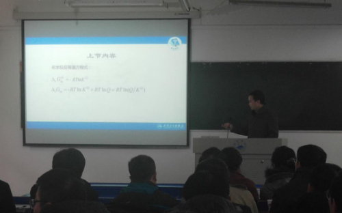 为激励学院教师积极投身教学,促进教学创新,切实提高教师的教学水平和教学质量,同时为了备战学校青年教师课堂教学竞赛,化环学院领导高度重视,通过层层选拔,学院推荐尹宁宁、潘家炎两名教师参加,为了让参赛教师更好的展示自己的风采,11月28日下午14:00在竞知楼210教室召开公开课展评赛,学院聘请虞耀君教授,陈晔教授,张康华副书记,谢宝华老师,刘祥丽老师及王慧娟老师作为评委,另外还有花金龙书记、曹小华副院长及学院新进博士参加此次活动。