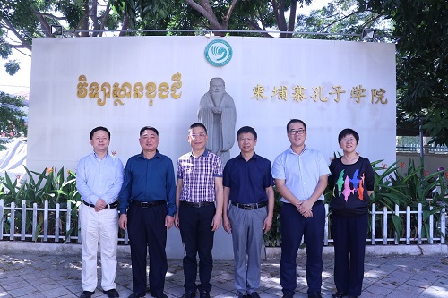 11月22日中午,北京华文学院副院长曹正国、北京华文学院办公室副主任陶鸿雁、北京华文学院招生办公室副主任孙伟恺、北京华文学院培训部副主任王图保一行四人访问了柬埔寨皇家科学院孔子学院。柬埔寨皇家科学院孔子学院中方院长柴克清热情接待了北京华文学院来访代表团。