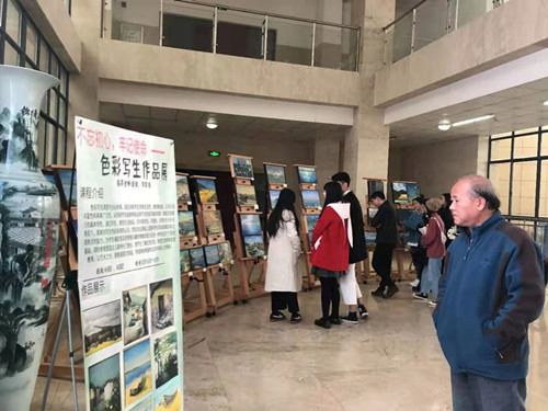 11月18日上午,艺术学院“不忘初心 牢记使命”--美术学专业2018级色彩写生作品展于艺术大楼一楼大厅举行,出席本次活动的有:党委书记王春生,教学副院长虞斌,副书记沈杨,美术教研室主任谭丹武,以及艺术学院2018、2019级部分学生共100余人到场参加。
