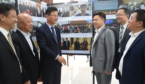 为庆祝柬埔寨皇家科学院孔子学院成立十周年,12月22日,在柬埔寨皇家科学院恩达戴薇大楼四楼会议厅举行了“九江学院书画展”。 校长刘晓东、柬埔寨皇家科学院院长宋独博士(SOK Touch)等参加开展仪式。