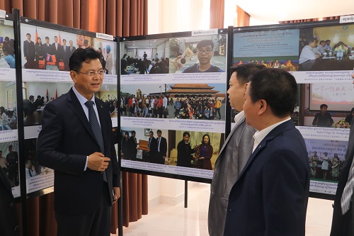 刘晓东校长在观展时指出,书画是中国文化传承的载体,九江学院五位艺术家捐赠十余件作品,既是对孔子学院汉语教学和文化交流事业的支持,也是促进中柬文化交流的一件大事,非常有意义。