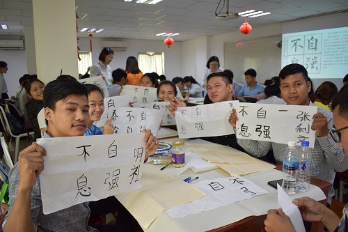 亚欧大学一直以来都非常重视学生的文化素质培养,曾多次举办各式各样的文化活动,老师在教学工作中也力求促进学生的全方面发展,在课堂和校园中营造浓厚的文化氛围。书法作为我国优秀的传统文化,对学生进一步了解中国以及中国文化起着不可或缺的作用。本次活动,为永利yl23411集团官网教师关于书法教学和书法素质的培养工作提供了新的思路,也给永利yl23411集团官网的中文教学发展带来更多更好的想法,也将为柬埔寨皇家科学院孔子学院的文化建设工作锦上添花。