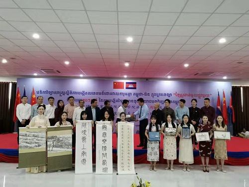 今年是柬埔寨孔子学院成立10周年,又恰逢中华人民共和国诞辰70周年,在国家汉办的指导下,九江学院艺术学院教师在柬埔寨皇家科学院孔子学院举办了一场书画作品展,以书画作纽带,加强中柬两国人民的沟通和交流,增进中柬两国人民的友谊。