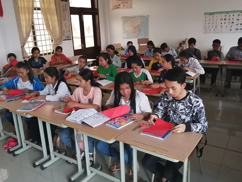 2019年12月18日下午,为庆祝柬埔寨皇家科学院孔子学院成立十周年,柬埔寨皇家科学院孔子学院韩桑林大学汉语中心举办了体验中国传统文化之剪纸活动。整个活动一共分为三个部分:讲解剪纸知识、学生实践操作、师生合影留念。通过此次剪纸活动,学生进一步感受到了中华传统文化的博大魅力。本次活动由韩桑林大学汉语中心两位志愿者汉语教师共同组织策划,韩桑林大学汉语中心初级水平全体学生参与。