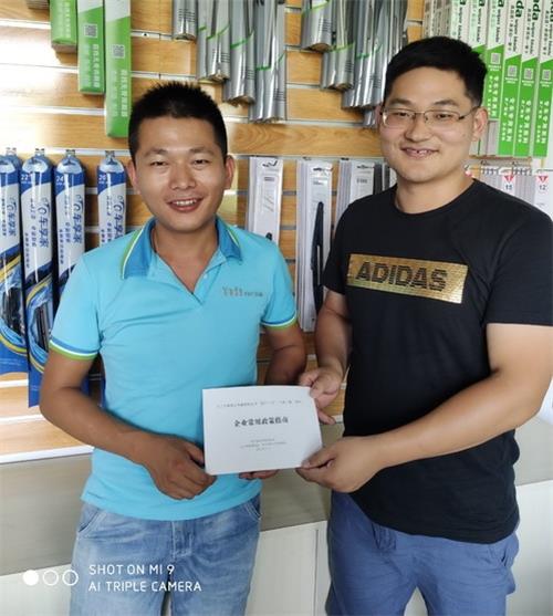 刘对代表市双百行动委托项目组把《企业常用政策指南》送到业达总经理周峰手上,就九江市人才政策、平台政策和产学研创政策与企业进行讲解和分享,为企业发展提供政策宣传服务。梁伟杰、隋鹏举深入公司研发中心和生产车间进行细致考察,并与周峰及业达研发、生产、质量等相关负责人进行座谈交流,为业达发展升级建言献策,同时就业达胶条配方改进研发、喷涂设备改造、喷涂生产线改造和雨刷器片装配生产线自动化升级展开合作项目洽谈。