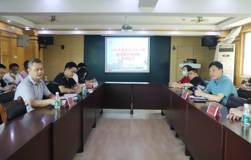 7月1日,2020年度九江市基层卫生人才能力提升培训班开班仪式在永利yl23411集团官网附属医院行政楼四楼会议室顺利举行。九江市卫健委党委委员徐端、基层卫生科科长查裕国,附属医院副院长胡志坚出席了开班仪式,全市各乡镇卫生院和社区卫生服务中心35名基层临床医师参加了开班仪式。开班仪式由附属医院医务科科长柯益民主持。