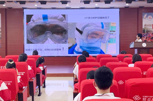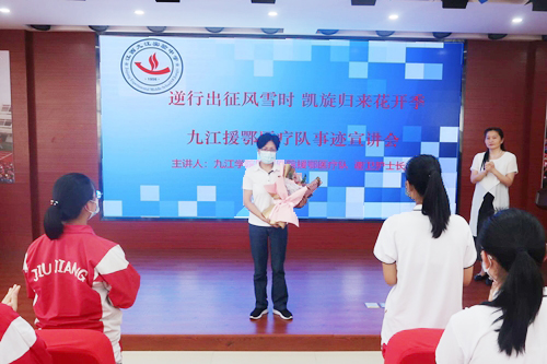 6月1日,应九江实验中学邀请,九江学院附属医院援鄂队员、科护士长谢卫走进校园为同学和老师们分享战“疫”一线感人故事和先进事迹,在儿童节给同学们送上一份特别的礼物,宣讲活动受到了全体师生的热烈欢迎。