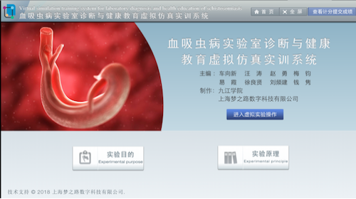 同时,基础医学院将自主开发的5个虚拟仿真实验教学项目进行免费共享,并组织老师提供虚拟项目教学在线答疑等教学支持,保障虚拟实验教学顺利实施。其中,车向新教授主持开发的《血吸虫病实验室诊断与健康教育虚拟仿真实训系统》在教育部“实验空间”进行共享,其余项目在上海梦之路公司虚拟实验教学资源云平台上进行共享。学院实验中心安排了专人负责项目的咨询答疑及运行维护,确保虚拟实验教学项目的稳定运行。