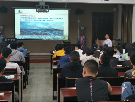 授聘仪式结束后,唐安中就专业情况为全体新同学做专题讲座,他结合自己丰富的人生经历,深入浅出、娓娓道来向同学们讲述了环境问题的由来,介绍了我国面临的环境污染形势。他着重介绍了九江大气污染防治、甘棠湖和南门湖的治理等近几年九江市在环境保护方面所做的工作,并希望年轻学子们行动起来,从身边做起,从文明节俭的餐饮消费方式开始,一起保护我们的环境。