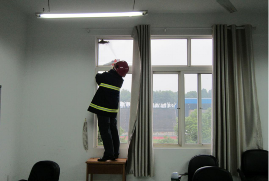 随后,一名保卫处工作人员“全副武装”,将平时训练穿的消防服当成防蜂服,穿戴好后果断出击,采用火攻或杀虫剂喷杀等方式快速处置,为不留后患,防止马蜂再次原处筑巢安家,除蜂人员用铲刀将巢根连根铲除,并对周边墙体再次进行杀虫剂喷杀,肃清“残余势力”,保卫人员娴熟、利落的除蜂过程让远处观战的师生惊叹、折服,个个都竖起大拇指,好样的。