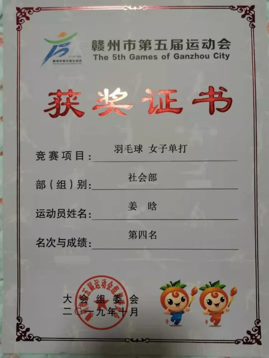 作为非职业运动员,姜晗能在省级羽毛球女子单打的比赛中获得二等奖的好成绩,与她长期的刻苦训练是分不开的。姜晗同学从小酷爱羽球运动,很小便跟随母亲学习羽毛球技艺,并在学习文化课业之余努力训练。仅在小学期间,姜晗获得了各级别比赛的多项羽毛球比赛冠军。
