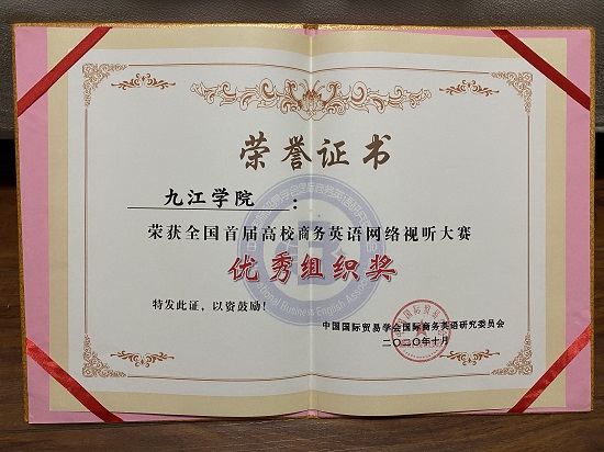 本次大赛和研讨会由中国国际贸易学会国际商务英语研究委员会主办,浙江越秀外国语学院和九江学院外国语学院承办,九江悠然网络教育科技发展有限公司和北京帮学试科技有限公司协办。