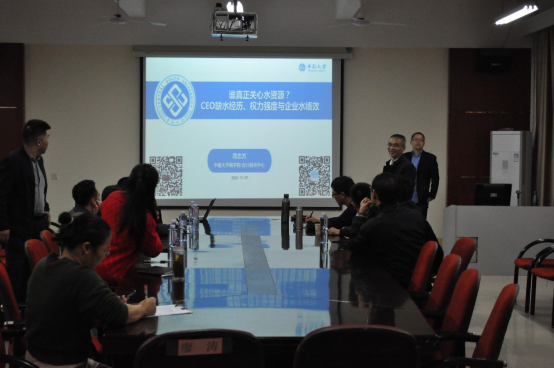 讲座中,周志方教授主要分享了两个内容:一是“CEO缺水经历、权力强度及企业水绩效”实证论文的研究思路与完成过程;二是ESI论文写作的要点与发表流程。