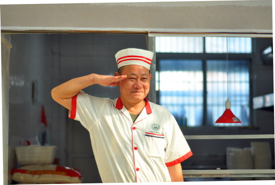 大兵师傅今年49岁, 曾在部队炊事班服役12年。师傅讲到,回想当初,在部队,被分配到炊事班服役还有点“委屈”。用大兵的话讲,当兵的人,哪一个不想手握枪杆子,谁又想整天捣弄这柴米油盐酱醋茶?开始还觉得没出息,后来炊事班的磨砺让大兵懂得,手握锅碗瓢盆也是“打仗”,舌尖上的战场打不好,还有可能吃败仗。就这样,十二年一晃而过,“大兵”手上磨了一层又一层老茧,额头上也有了庄稼汉才有的褶皱。