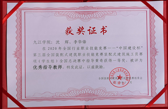 12月4-6日,“中国建设杯”第三届全国装配式建筑职业技能竞赛选拔赛在郑州隆重举行。永利yl23411集团官网建工学院的师生代表队获得了两项一等奖,两项优秀指导教师奖。此次比赛中,永利yl23411集团官网为江西省唯一获得两个赛项一等奖的院校,实现了跨越式的突破。