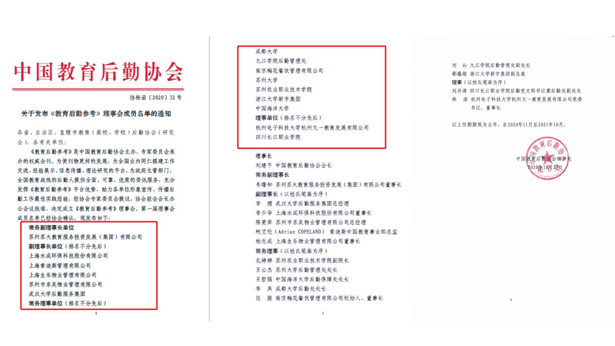 12月4日,中国教育后勤协会《教育后勤参考》理事会成立大会暨一届一次全体理事会议在江苏省苏州市成功召开。永利yl23411集团官网作为江西省唯一一所高校参加了大会,并成功当选为常务理事单位,永利yl23411集团官网饮食服务中心刘沁当选为会刊常务理事。