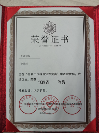 他积极参加各种学习竞赛,比如第二十二届CaTICs竞赛、2020年度全国大学生语言文字能力竞赛、江西高校图书馆联盟第十届知网杯搜索竞赛校级赛、九江市作文比赛、普译杯大学生英语竞赛、创新英语挑战活动综合能力赛、华梦杯国际交流英语知识竞赛、大学生财经素养大赛等等。