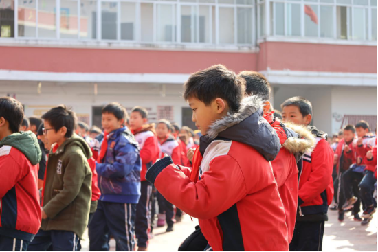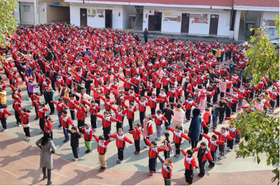 涌小有六个年级、536名学生。抵达目的地时,我们看到全校学生在操场上排列整齐,在体育老师的带领下做广播体操,一招一式,有模有样。后来才知道,这一套广播体操是九江学院体育支教老师王红霞所教,在涌泉乡中心小学广播体操比赛中,还获得了第一名的好成绩。