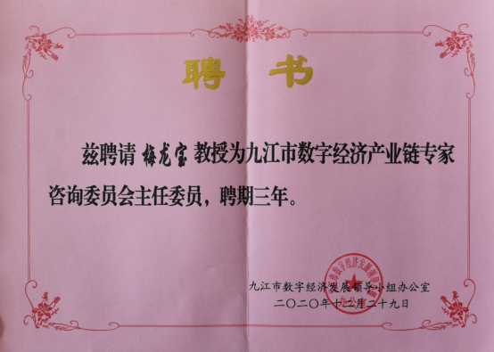 12月29日,九江市数字经济产业链专家咨询委员会第一次会议暨九江数字经济需求对接会在鄱阳湖生态科技城召开。会上,永利yl23411集团官网梅龙宝教授受聘担任九江市数字经济产业链专家咨询委员会主任。