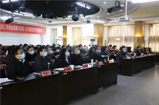 1月14日,DRGs付费管理学者、原九江学院校长甘筱青教授率其研究团队周琳琳博士等,来附属医院进行学术调研并为医院中层干部作专题培训,医院领导班子及全体中层干部参加了培训会。