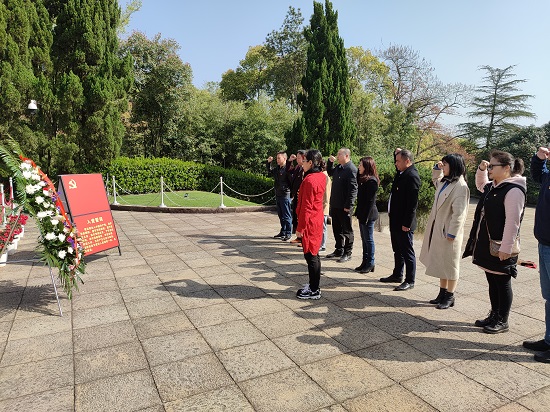 座落于共青城富华山的耀邦陵园松柏环抱、绿荫满园、安静庄严。党员们怀着无比崇敬的心情瞻仰了耀邦墓,向耀邦同志敬献花篮,三鞠躬,表达了对这位伟大的无产阶级革命家、政治家的深切怀念和崇高敬意。