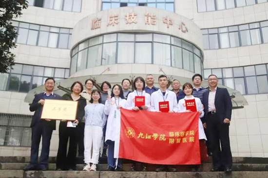 此届大学生医学技术技能大赛临床医学专业五年制赛道华东分区赛,共有江西省、安徽省、福建省、江苏省、山东省、浙江省和上海市等46所高等院校的184名参赛选手同台竞技。分赛区初赛采用多站式,按抽签顺序分成三批依次参赛,每场设A、B两赛区同时进行。临床医学院参赛队员轮转在各比赛站点,与其他队伍进行激烈角逐。队员们仔细认真,顽强拼搏,最后荣获了三等奖。