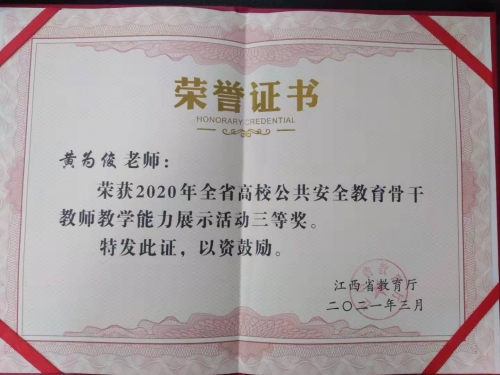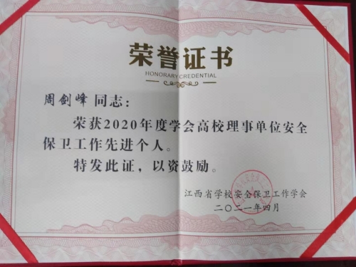 4月22日-23日,在宜春召开的2021年江西省学校安全保卫工作学会年会上,永利yl23411集团官网保卫处处长余朝阳当选为新一届江西省学校安全保卫工作学会副理事长,永利yl23411集团官网保卫处副处长周剑峰获评2020年度全省保卫工作先进个人、教育学院黄为俊老师获高校本科组公共安全教育骨干教师教学能力展示活动三等奖。
