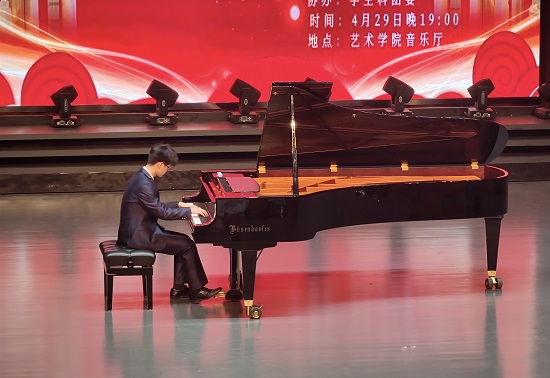 最后,钢琴演奏博士何雨婷老师为大家带来了钢琴曲《彩云追月》《皮黄》,她高超的演奏技巧、深厚的音乐功底、完美的艺术表达把音乐会推向了高潮。