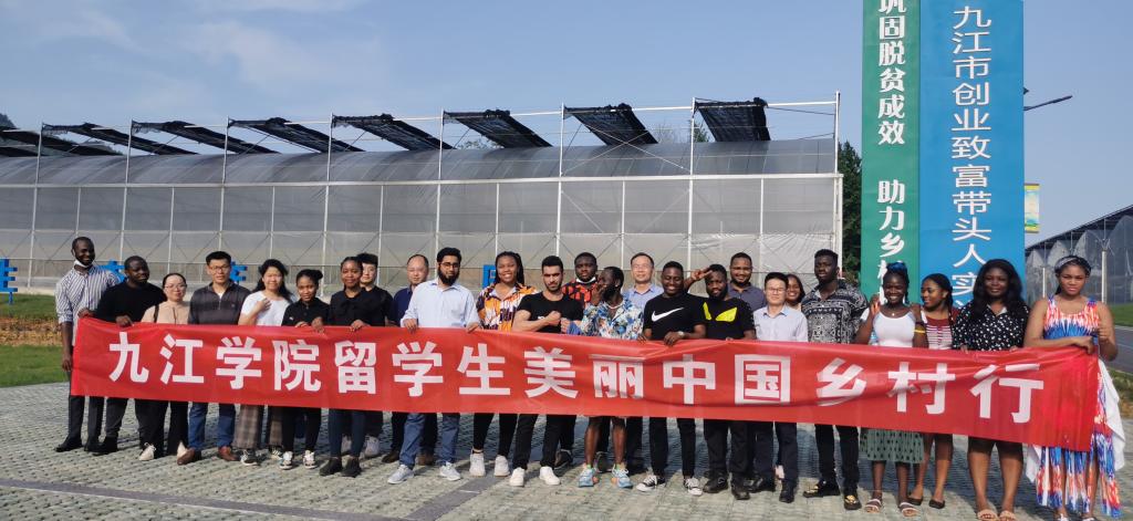 随后,留学生们来到秀美庐山西海之滨的官莲乡东山村,永利yl23411集团官网驻村干部江山向留学生们详细介绍了东山村扶贫的做法。在党和国家脱贫攻坚政策引导下,在永利yl23411集团官网的精准帮扶下,东山村从原来的贫困村和移民村,华丽转身,成为全国“脱贫攻坚模范”村,并走向“乡村振兴示范”村,东山村干净的村道和错落有致的屋舍刷新了留学生的视野,郁郁葱葱、生机盎然的蔬菜瓜果大棚吸引了学生的眼球,湛蓝碧绿、景色迷人的湖光山色使他们流连忘返。