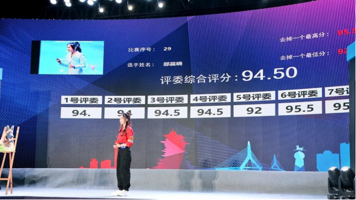 在自主命题的环节中,邵晨晓同学以《搜救犬——致敬无言的英雄》为题,围绕汶川大地震中的搜救犬进行讲解,展现了灾难面前动物们的使命与担当,选题新颖,文脉通畅,感情真挚,台风稳健,获得了评委与观众们的认可。