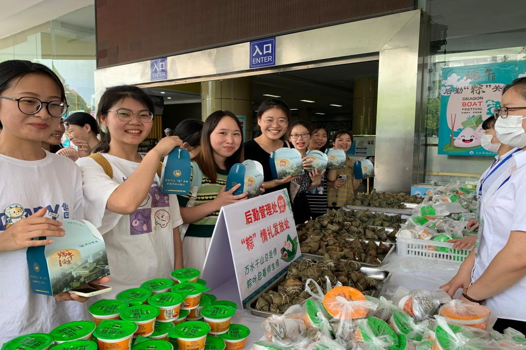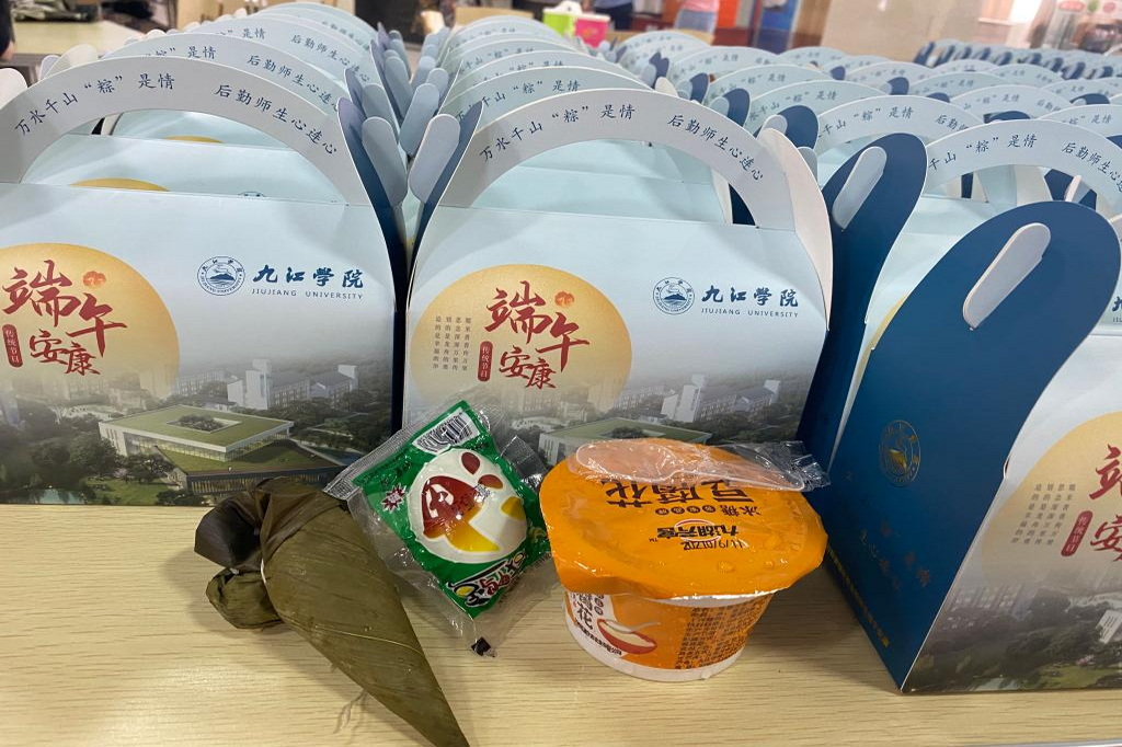 6月11日,在主校区教工食堂和浔东校区教职工小餐厅吃饭的教职员工收获了意外的惊喜,每个就餐的教职工均收到了后勤管理处精心设计的端午节伴手礼盒。6月12日,后勤管理处组织100余名师生在学生三食堂开展了包粽子活动。大多数师生没有包粽子经验,看似简单的粽子包起来真不容易,餐厅师父们现场变身为指导“老师”,教授大家包粽子的方法和技巧,只见一双巧手挥动间,一片片清香的粽叶、一粒粒晶莹的糯米,瞬间变成了一个个碧绿饱满的粽子,引得围观者啧啧赞叹。6月14日端午节当天,为确保无法与家人团圆的各族师生感受到浓浓的节日氛围,后勤管理处组织各食堂开展端午节关心关爱活动,用硬核又暖心的方式,为师生免费发放近15000枚粽子,同时还准备了咸蛋、豆花、绿豆汤等食品,让师生们感受到来自学校的浓浓关爱和节日气氛。
