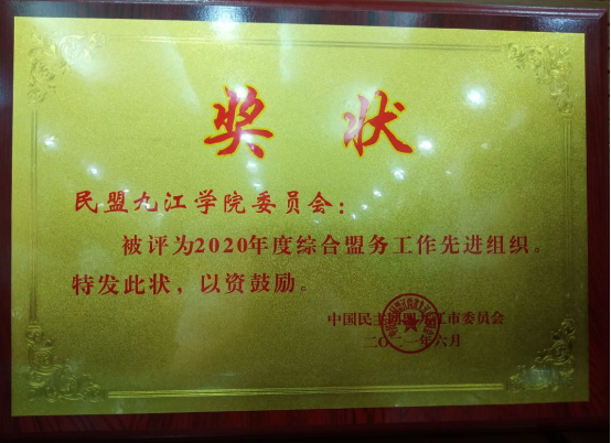 民盟九江学院委员会在参政议政调研、社情民意信息、理论研究、组织建设、宣传报道及社会服务等方面均取得优异的成绩,以总分612分高居九江各民盟组织之首。